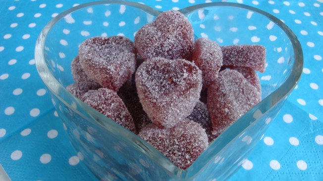 Jag har gjort 30 stycken geléhjärtan. Smaka på de orden! Jag är mäkta stolt. Det vore att ljuga om jag säger att det var lätt som en plätt, en sockerblandning som skall koka i olika höga temperaturer kräver sin man (eller kvinna!). Tack Mia Öhrn för receptet!