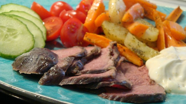 Tjälknöl är nog något av det lättaste i matväg, det lagar sig själv i ugnen över natten. Tillbehören kan man avancera efter smak, tid och vad man har hemma. För vår del denna torsdag hade vi fyra små potatisar, morötter och créme fraiche i kylen. Men oj vad gott det blev!