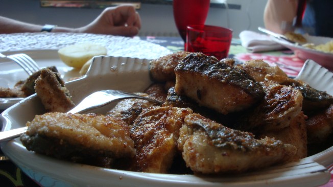Blanda mjöl och skorpmjöl. Smula i havssalt. Lägg mjölblandningen på en tallrik och ”rulla” fiskfiléerna i blandningen. Stek i panna med rikligt med smör.