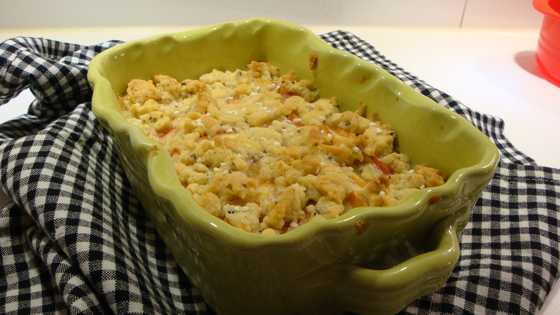 Börja med degen. Rör ihop smöret med äggulorna. Tillsätt socker, kardemumma och mjöl. Använd med fördel matberedare. Dela dege i två delar. Tryck ut den ena halvan i en pajform och nagga med en gaffel, lägg den andra halvan åt sidan. Sätt in i ugn cirka 15 min, 175 grader.
